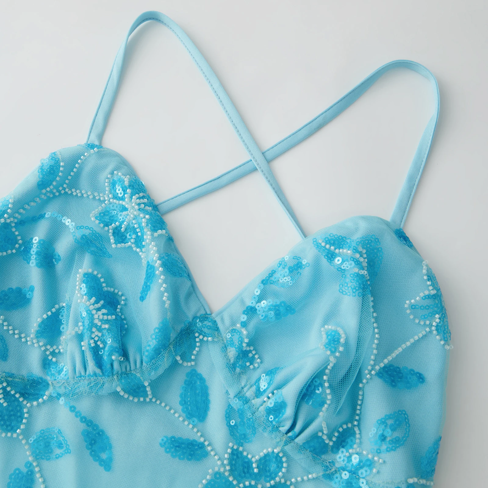 Women Sequins Beaded Flower Slip Dress Tie-up Backless Spaghetti Straps Summer Mini Dress for Party Holiday Casual