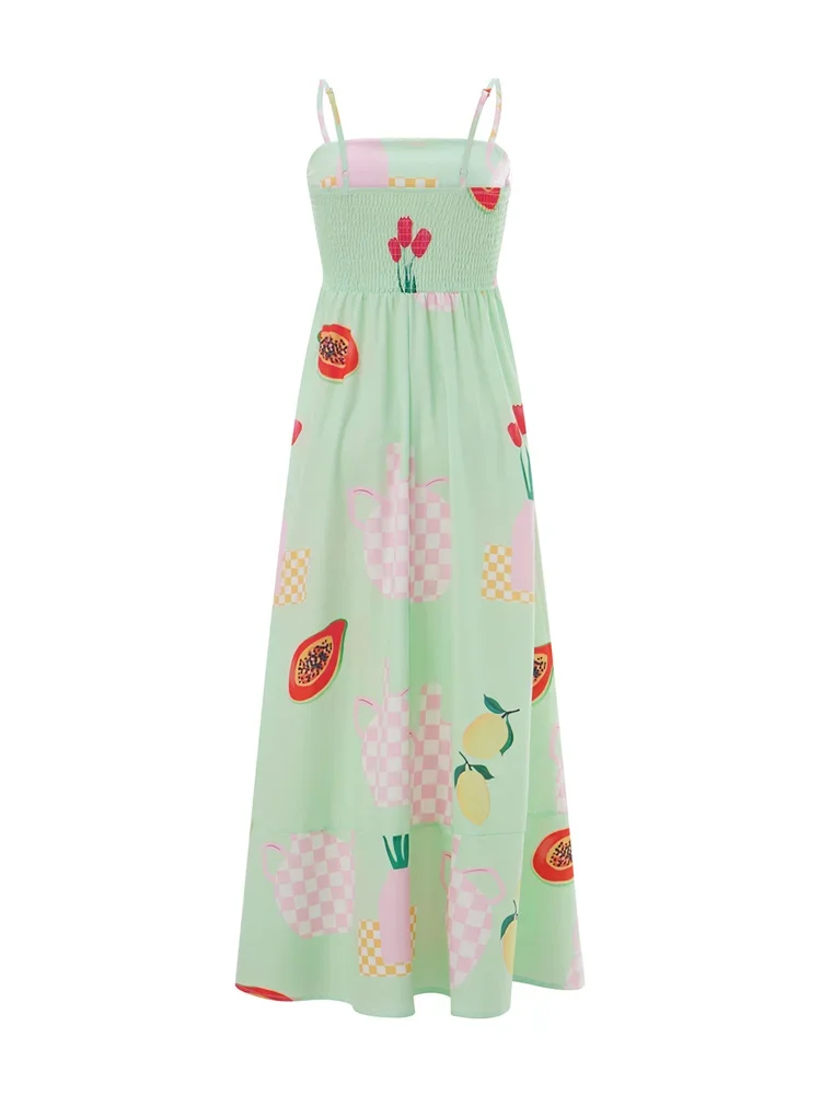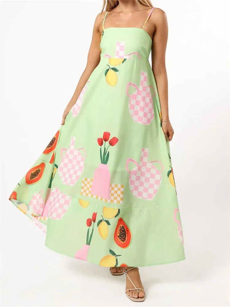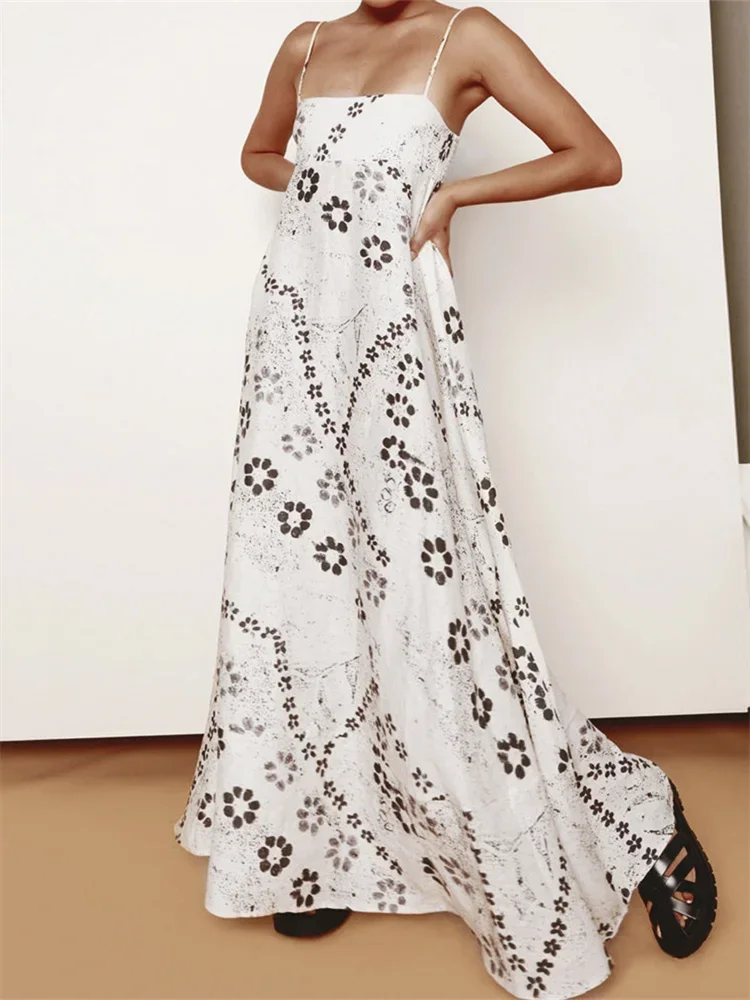 Womens Summer Long Dress Casual Floral Print Sleeveless Spaghetti Strap Beach Dress Flowy Dress