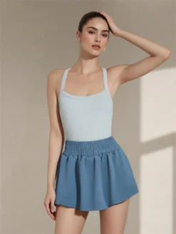 Women’s Tennis Dress Solid Color Sleeveless Athletic Dresses Workout Golf Tank Dress Summer
